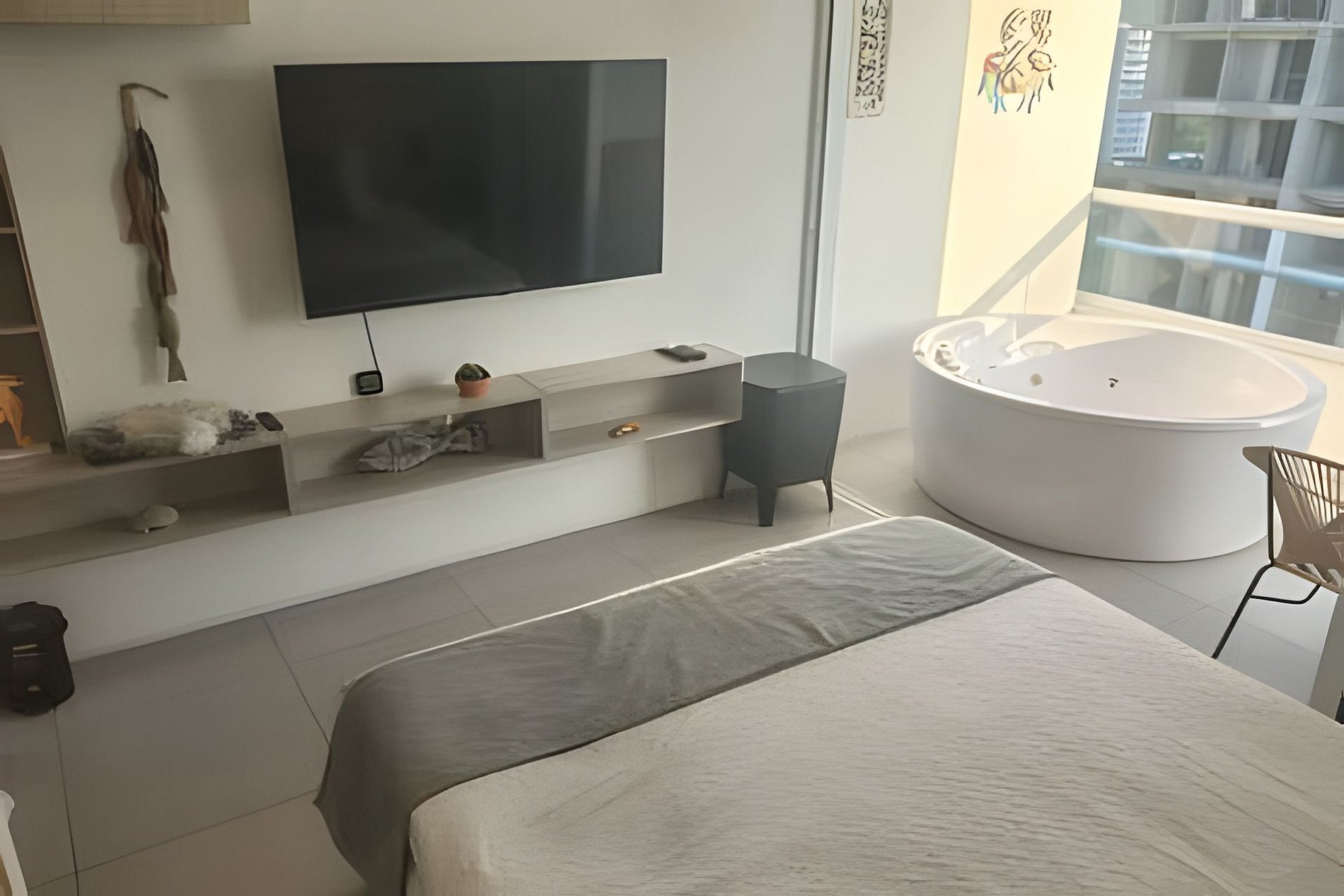 Disfruta una cómoda estancia, con tu pareja o por negocios, en este exclusivo apartamento diseñado para ofrecer equilibrio visual y máximo confort. Inicia el día con una taza de café mientras contemplas el amanecer sobre el mar y termina la jornada relajándote en nuestro jacuzzi privado, apreciando vistas inolvidables. El espacio cuenta con WiFi, aire acondicionado, cocina equipada y acceso ilimitado a las amenidades del edificio: piscina, spa y baño turco. Estamos ubicados a pocos pasos del mar