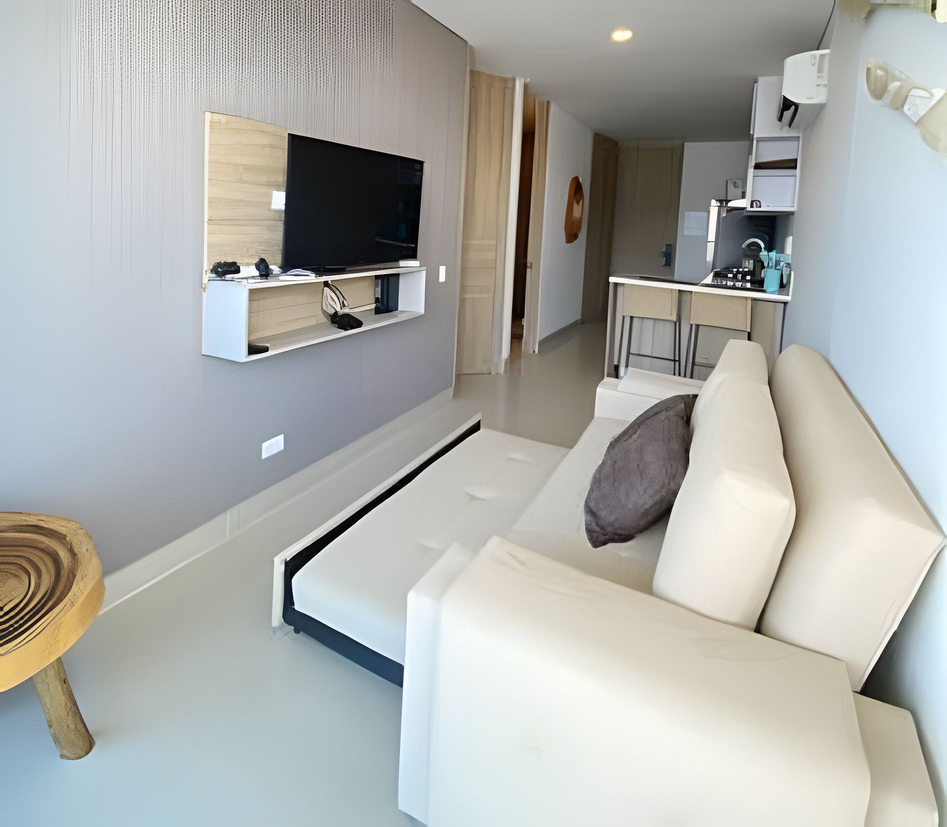 El Apto esta cargado de detalles, pensados para tu disfrute y bienestar, como si estuvieses un una suite de Hotel cinco estrellas, sabanas, almohadas, toallas de la mejor calidad, cocina dotada con menajes para que tu estadia sea placentera, el edificio cuenta con club de playa exlusiva para los huespedes del edificio encontraras kioskos, asoleadoras sillas, tumbonas, un bar en la playa, para disfrutar de un cocktail a contemplar el atardecer samario.